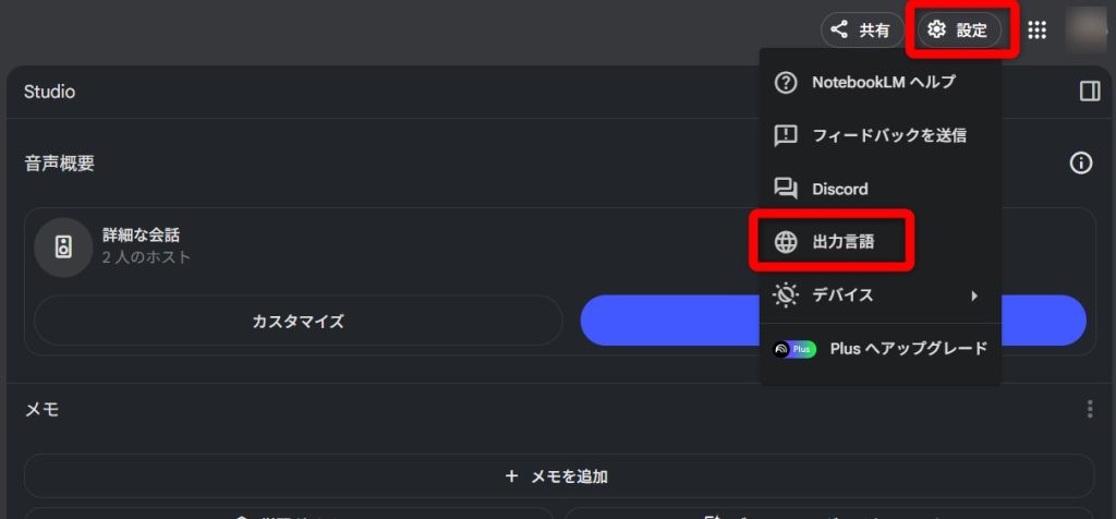 ※出力言語を変更する設定