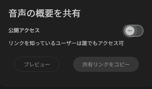 公開アクセスを使えば、リンクを知っているユーザーが誰でも生成されたAIポッドキャストを聞けるようです。